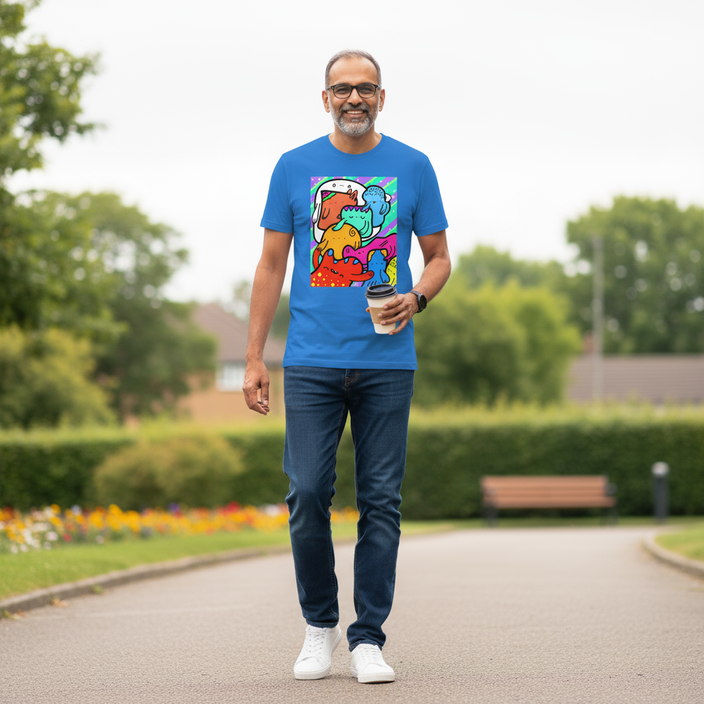 Blast some colour into people’s eyes and feed them some imagination in the street with this sustainable, high quality tee.